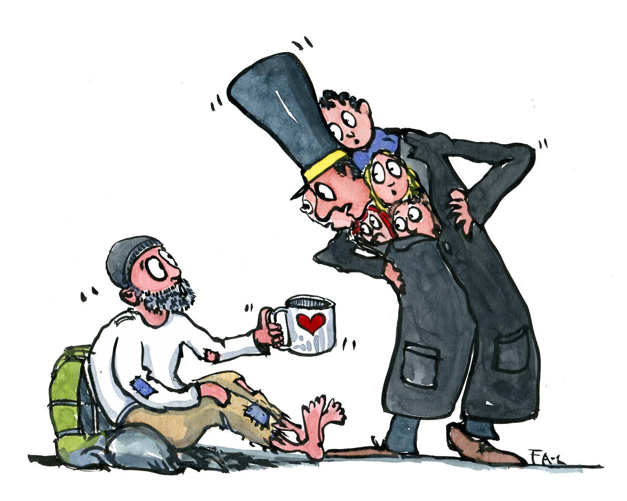 Color-illustration-common-good-community-vs-beggar-by-frits-ahlefeldt
