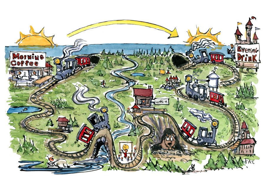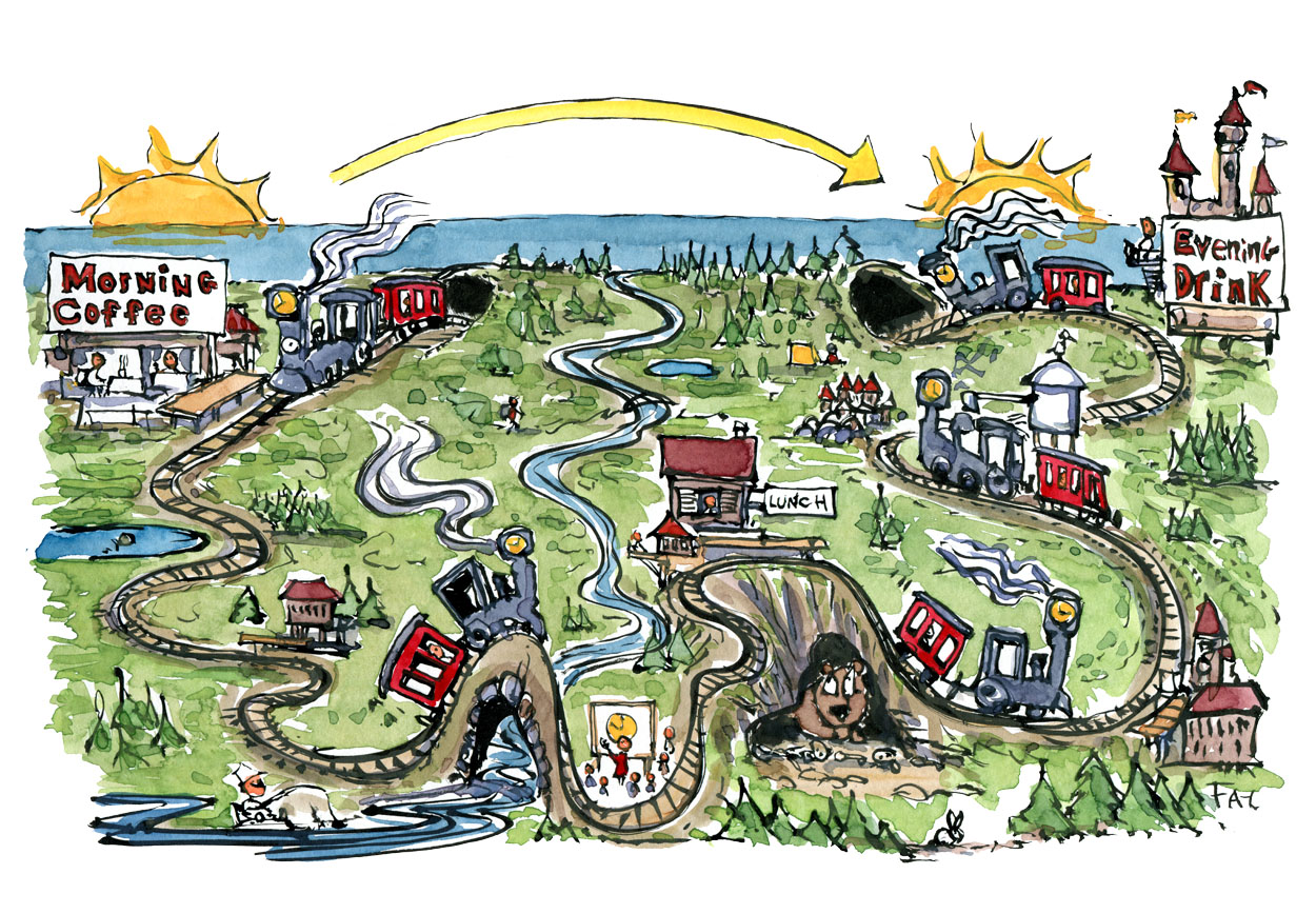 illustration-day-to-day-clock-train-of-life-landscape-drawing-by-frits-ahlefeldt