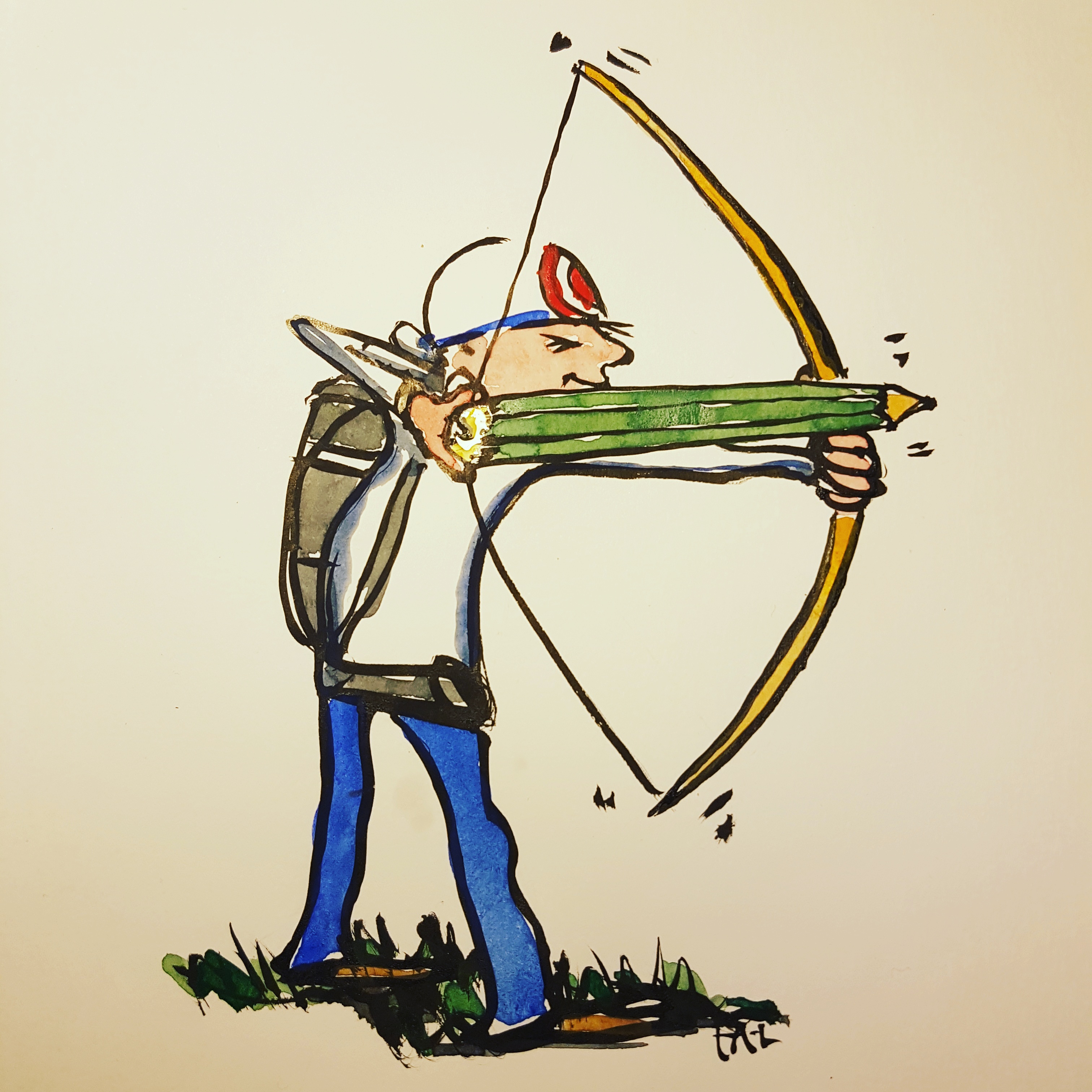 drawing of archer with goal hat