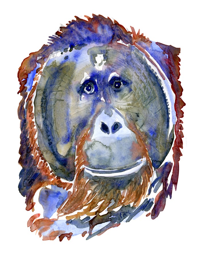 watercolor-animal-orangutan-male-front-by-frits-ahlefeldt