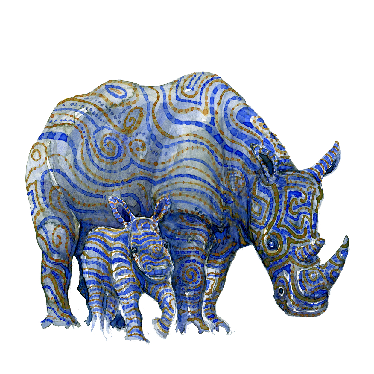 watercolor-animal-rhino-mother-with-offspring-baby-artwork-by-frits-ahlefeldt