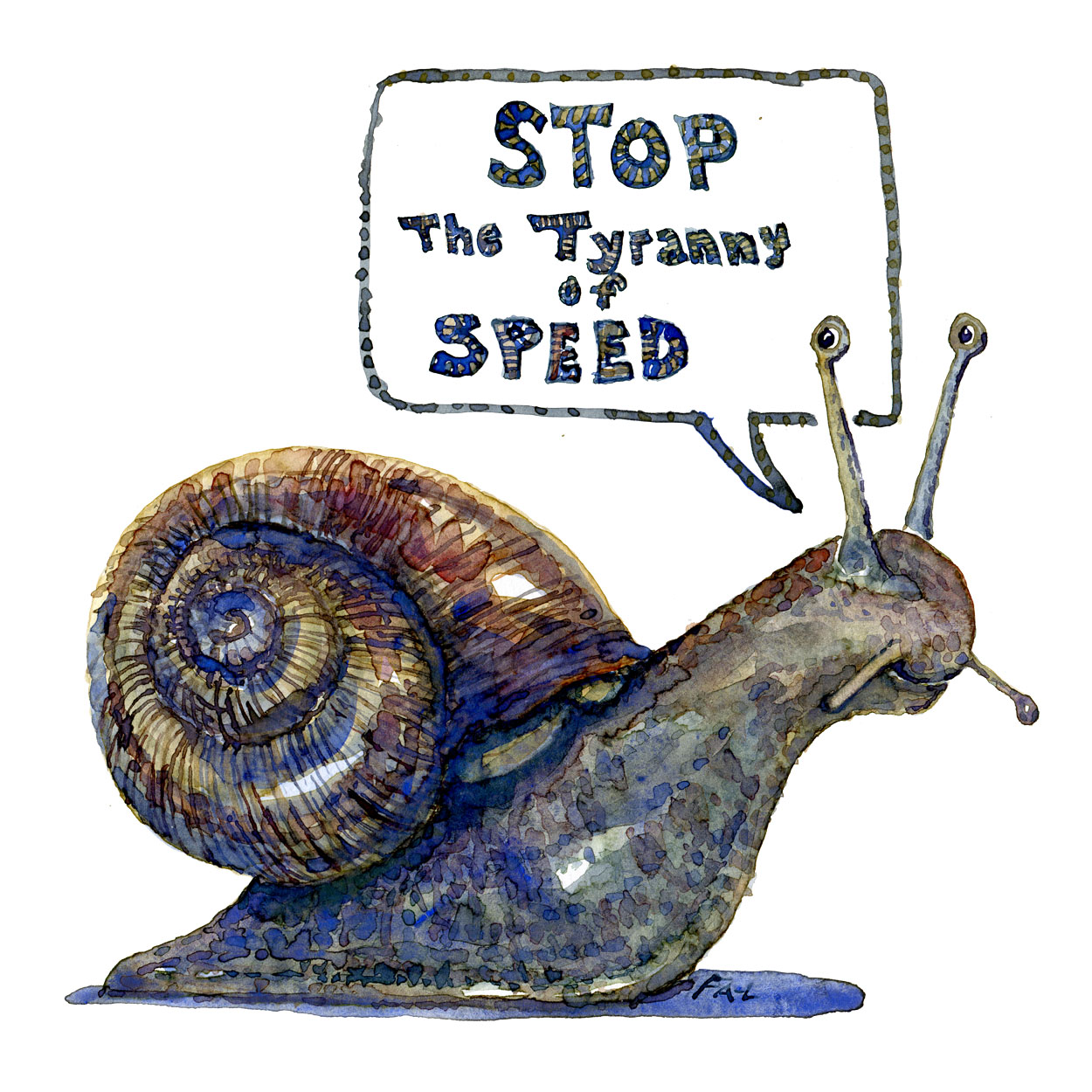 watercolor-animal-speak-snail-speed-tyranny-overrated-by-frits-ahlefeldt