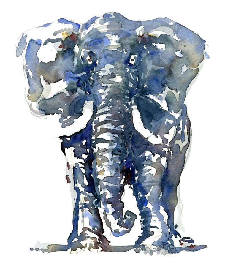 watercolor-elephant-blue-front-painting-by-frits-ahlefeldt